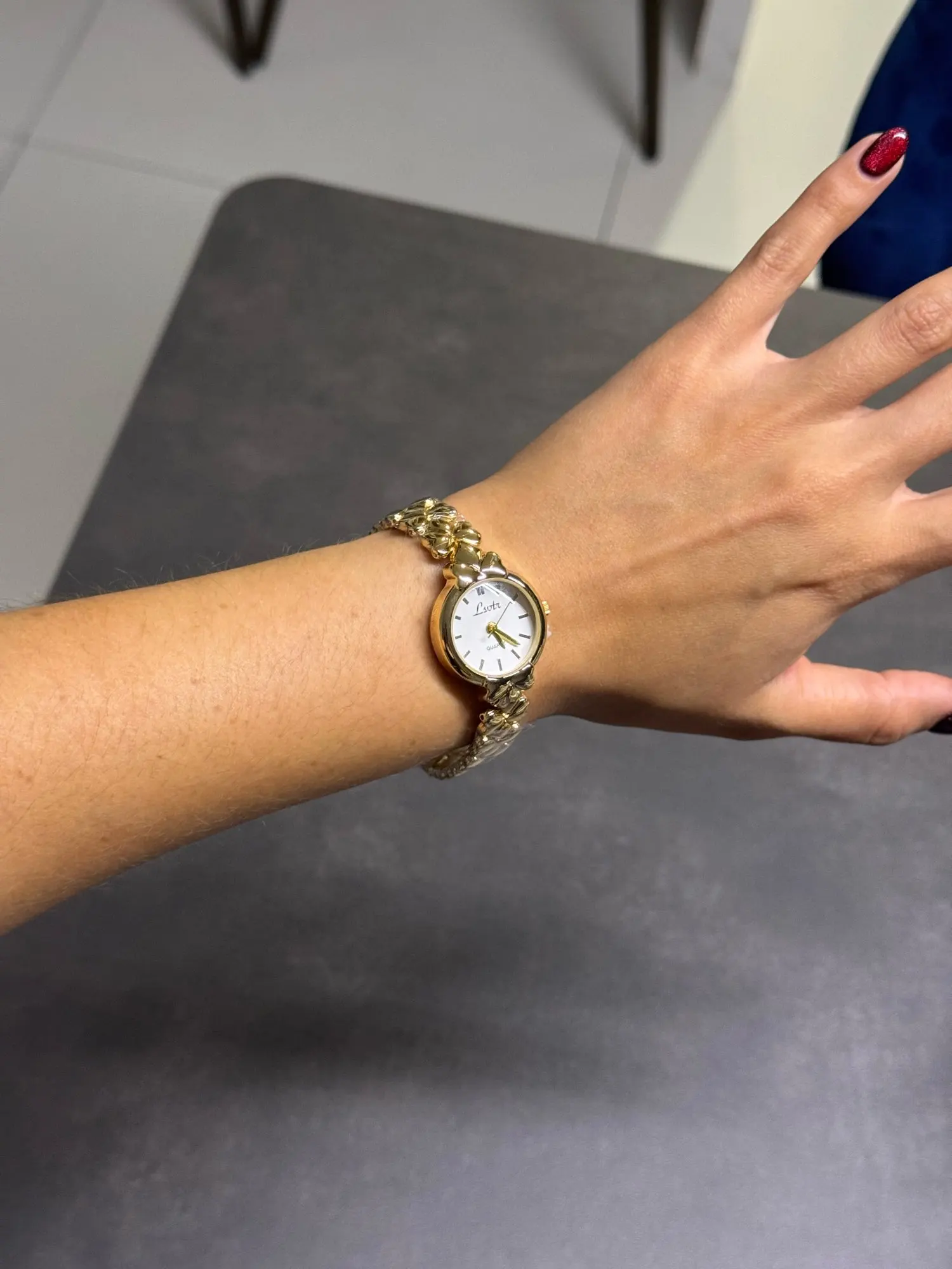 This refined women’s watch blends understated elegance with everyday sophistication. The slim case and sleek bracelet-like band give it the feel of a delicate piece of jewelry — not just a timepiece. Its minimalist dial and polished gold-tone finish make it perfect for elevating both workwear and evening outfits. Wear it solo for a subtle statement or stack with bracelets for an extra touch of shine.