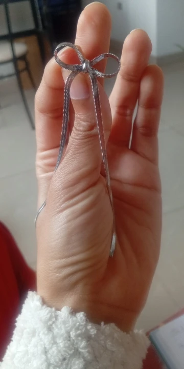 Elegant Design: Hand-tied bow ribbon with delicate herringbone chains for a flowing, tapered look